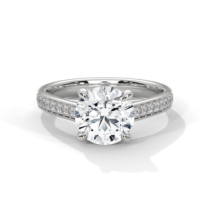 Embrace timeless brilliance with our radiant Round Lab Grown Diamond Solitaire Pave Engagement Ring. Expertly crafted in gleaming 10K white gold, this ring features a magnificent round lab-created diamond as its centerpiece, elegantly complemented by sparkling pave diamonds along the band.