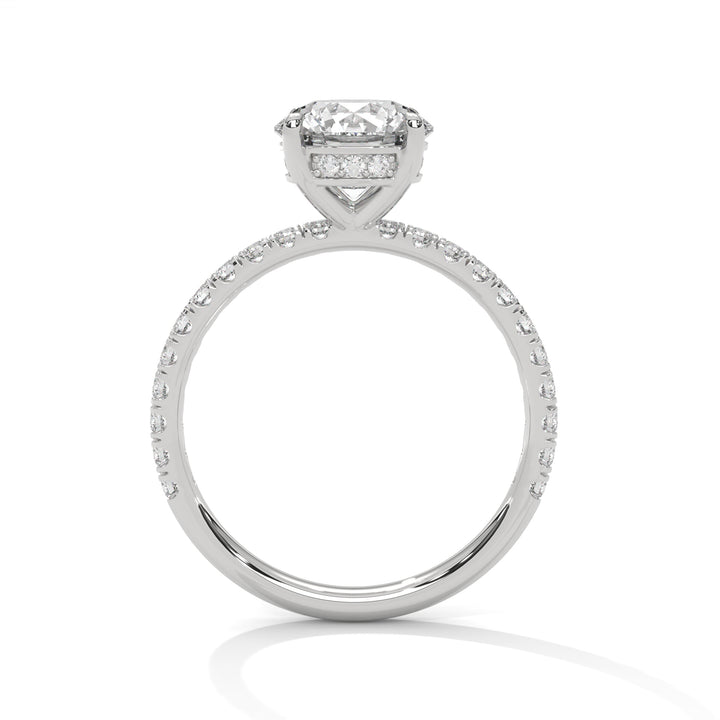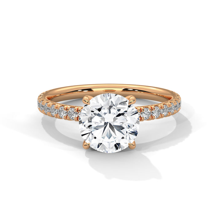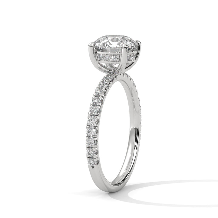 This lab diamond round pave engagement ring is an impeccable choice for an engagement, anniversary, or any significant milestone that warrants a fusion of classic elegance and captivating sparkle.
